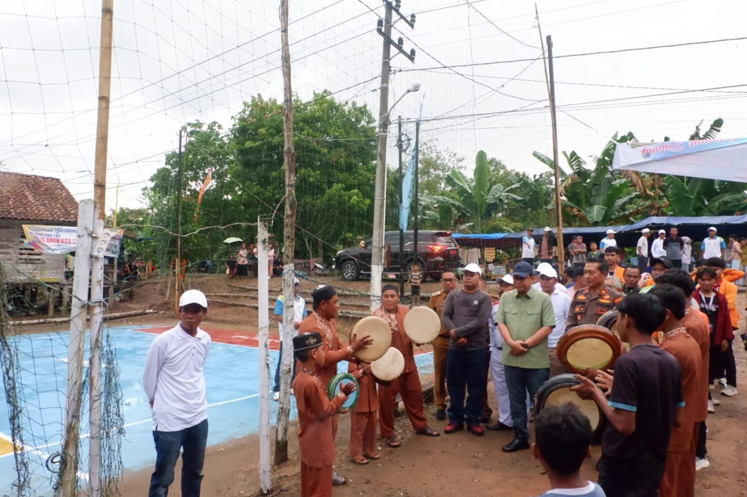 Kegiatan berlangsung meriah itu dilakukan pada Senin (13/10/25) sore, dilapangan bola voli Desa Jambi Tulo, Kecamatan Maro Sebo, Kabupaten Muaro Jambi. Bupati BBS dan rombongan disambut kompangan oleh warga setempat.
