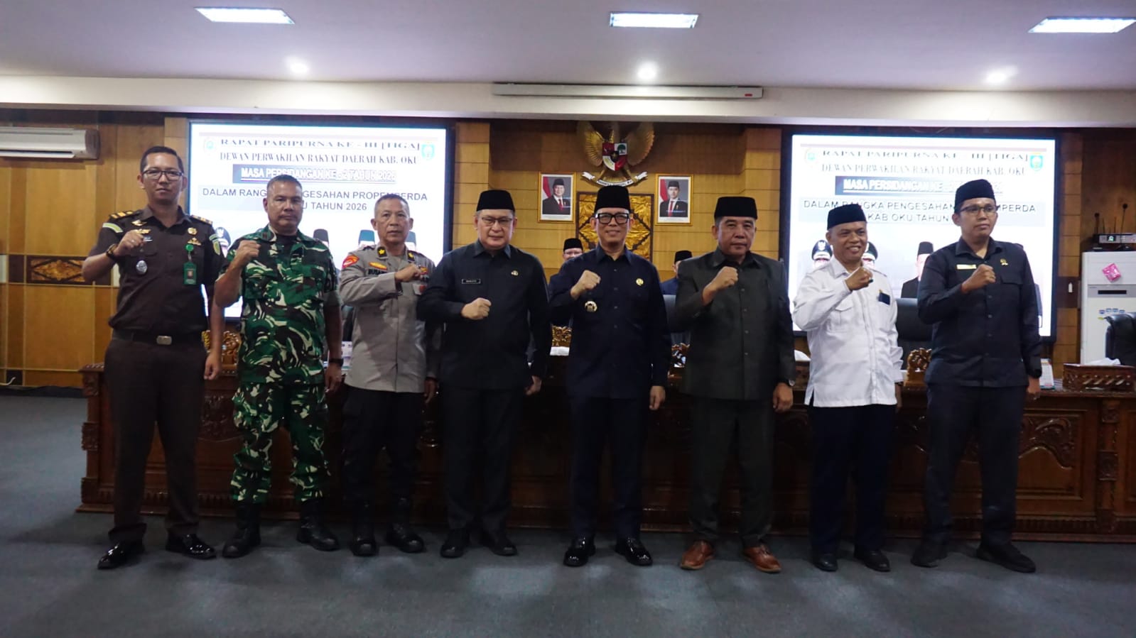 Rangkaian sidang yang berlangsung pada Senin, 6 April 2026 di Baturaja ini dihadiri langsung oleh Bupati OKU Teddy Meilwansyah bersama Wakil Bupati Marjito, Ketua DPRD Sahril Elmi, jajaran pimpinan dan anggota DPRD, unsur Forum Koordinasi Pimpinan Daerah (Forkopimda), serta Organisasi Perangkat Daerah (OPD).
